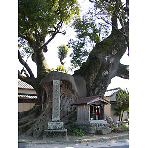 巨木は地上3m付近で大きく3方に枝をはっている。幹根元は8畳ほどの空間があるそうだ。また、3方に枝を広げている部分からは、樟に囲まれるようにしてムクの木が伸びているとある。