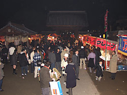 参道から多くの人々が集まっています。露店も並び祭りを感じさせます。参道は22時過ぎまで賑わっていました。
