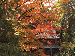 清水寺のある清水山は大変紅葉の美しい山で、三重塔も紅葉の季節になるとこのように普段とは違う表情を現します。ここを訪れるのは2回目ですが、話には聞いていたものの、紅葉がこんなに美しいとは思っていなかったので、思わずため息が出ました。 |
