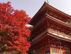 例年11月初旬が見頃になっているそうです。三重塔の周辺には赤いもみじが植えられていて、三重塔の紅と美しい競演をしているようです。
