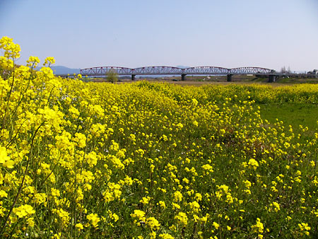 杷木町までやって参りました。まだまだ河川敷には黄色い絨毯があちらこちらに見られます。