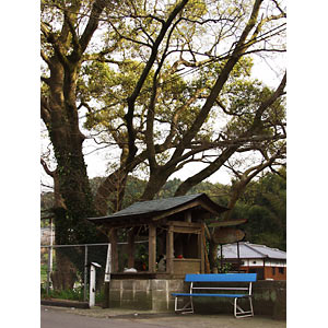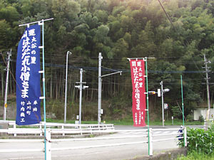 南関町との境にほど近い、山川町の真弓橋交差点(信号名はついてない)近くにおられる「はなたれ小僧」さま。 写真からもお分かり頂けると思うが、大変やさしいお顔立ちである。2本の鼻汁も見えますね。国道443号線の真弓橋信号から見える距離、近くを通られる際には是非お立ちよりを。