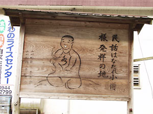 現地には「はなたれ小僧」の石像があって、なんでもテレビで紹介(地方局かな)されるぐらい有名な民話「はなたれ小僧」の発祥地ということで、実は興味津々だったのだ。なんせ鼻をたれている小僧の石像というだけでも稀有【けう】な存在と思うわけである。 まだご存知ない皆さんは「おおっ? そりゃすごい」と思われたことだろう。期待満々に訪れてがっかりされるといけないので先に述べておこう。はなたれ小僧殿は普通に風景の中に溶け込んでおられる。派手な振る舞いはない、どうかすると見過ごしてしまうほど普通な光景なのだ。