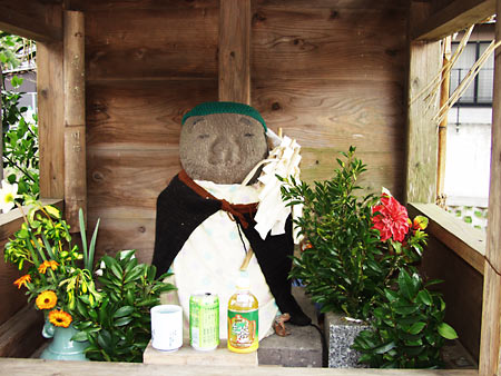 ご覧のように普通にお地蔵様が祭られている雰囲気だ。しかし、そこがまた民話らしいではないか。 よくある日本三大○○○のような豪華絢爛なる広告・看板が回りに乱立していたりすると、民話というローカルな雰囲気にはアンマッチと思う。 例えば、棚田が続くどこまでも静かなあぜ道に、バリッとした派手な色味のスーツに彫り深い端整な顔立ちの男、持ち歩くのは一流の証AmericanEXPRESSのゴールドカードのみ、だがどうしたことかお婆ちゃんが商う野菜直売所では、カードが使えず愕然と「ここはどこだ...」と立ち尽くす…ぐらい違和感がある。 要は民話には流行に左右されないローカルな雰囲気が合うと思うし、ここにはその雰囲気がある。例を続けるなら、腹巻姿でクワを担いだお爺さんが、野菜直売所のお婆さんに気さくに声をかけ、特製たくあんを買ってかえる姿がベストマッチだと思う(編集注:よく分からない例だが…ま、いいか)