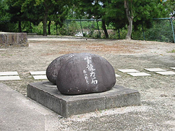 雲龍が16歳の時、矢部川の改修工事の人夫として働いた帰りに、天秤棒で約12キロの道のりをかついで持ってきたという重さ108キロと72キロの「雲龍石」。チョット見にくいですが、奥に72キロの石があります。